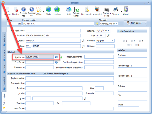 Per la configurazione dell’EDI sarà necessario, se non si è ancora fatto, creare la scheda anagrafica del fornitore: