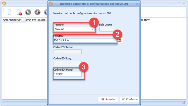 e nel campo attivo Codice EDI Planet inserire la sequenza di numeri successive all’underscore all’interno del nome del file.