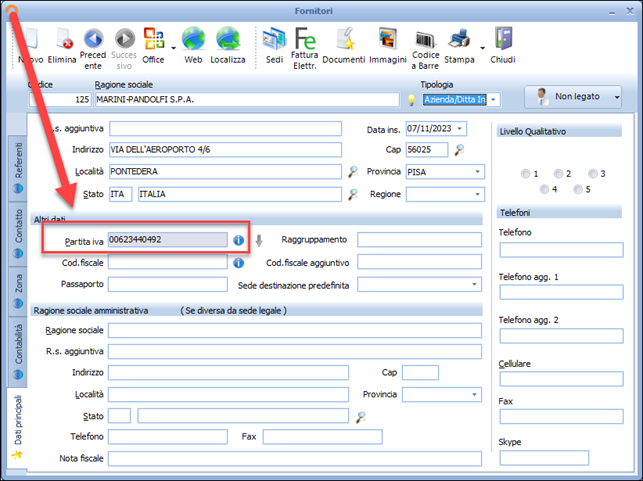Per la configurazione dell’EDI sarà necessario, se non si è ancora fatto, creare la scheda anagrafica del fornitore:
