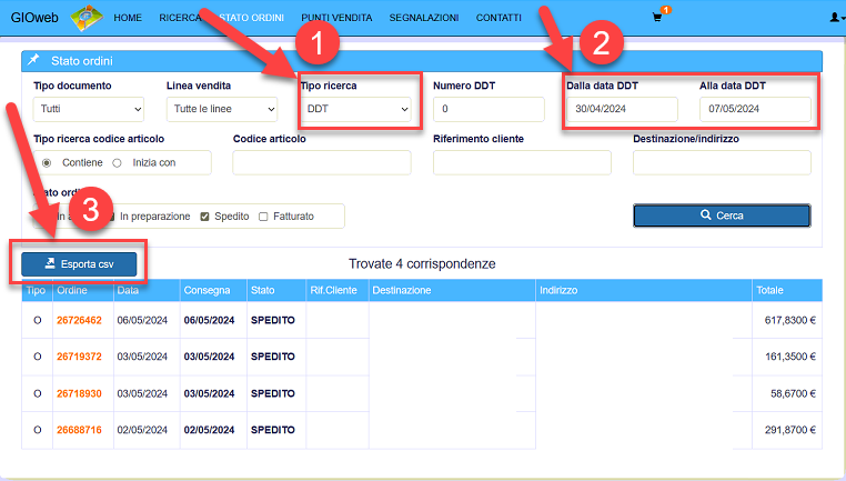 Ci aprirà l’elenco di tutti i Ddt che corrispondono al nostro filtro. Basterà Cliccare sul pulsante “Esporta CSV” per scaricare sul nostro pc il file da importare in Planet.