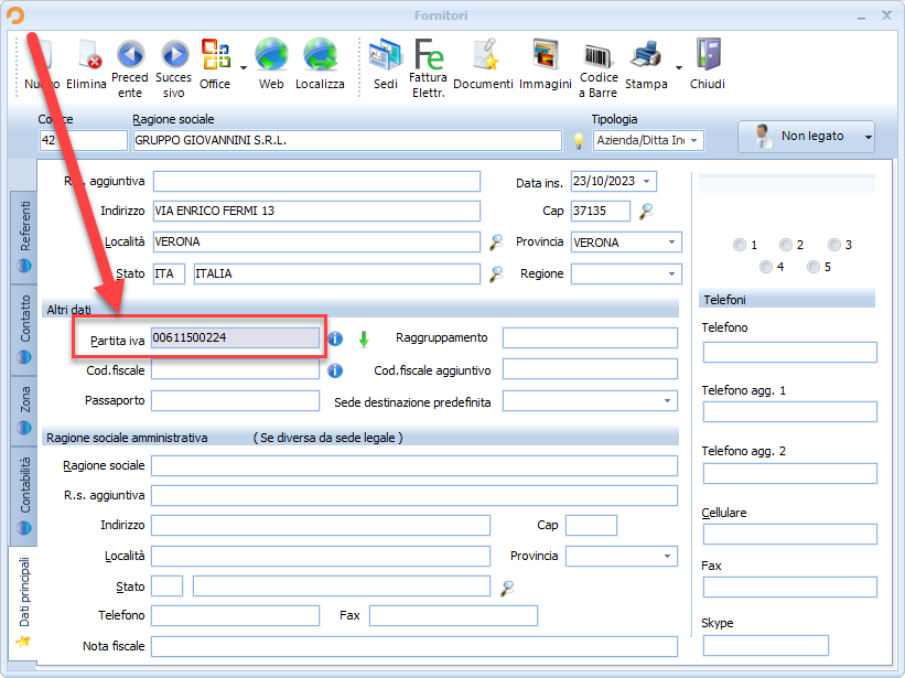 Per la configurazione dell’EDI sarà necessario, se non si è ancora fatto, creare la scheda anagrafica del fornitore:
